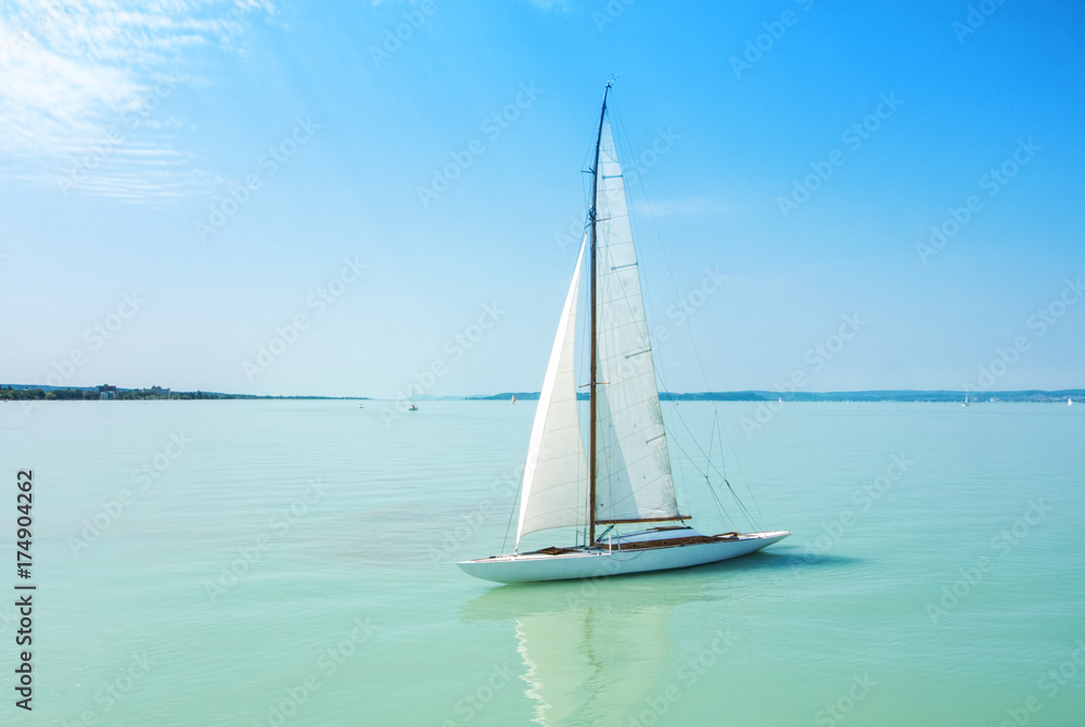 The azure lake and beautiful water plants attract thousands of tourists hungary balaton. At it widest point, lake.